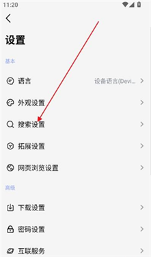 5、在设置中找到“搜索设置”并点击进入。
