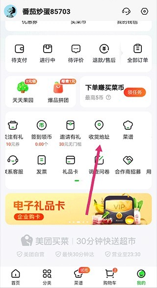 1、启动小象超市骑士版app,进入后点击右下方的【我的】,接着选择【收货地址】选项。