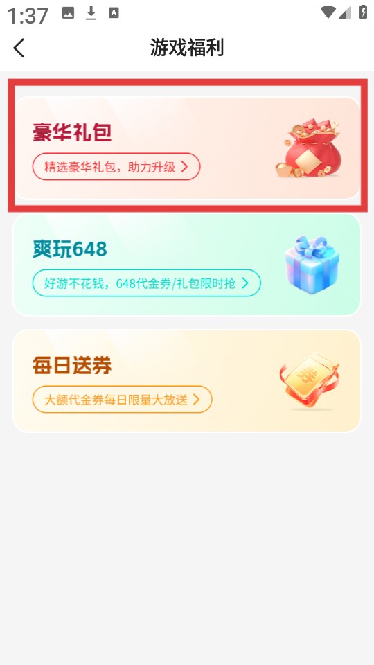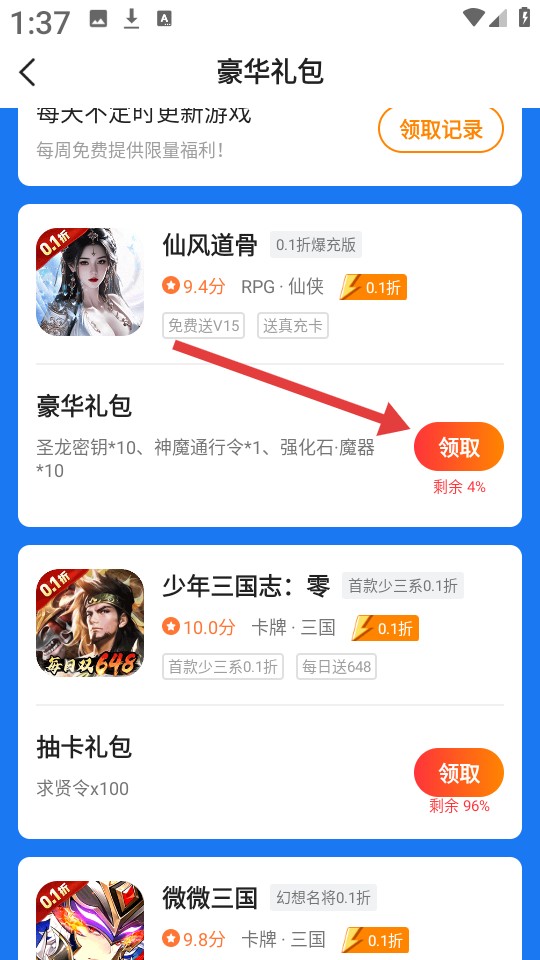 3、以“豪华礼包”为例,选择任意一款游戏礼包,然后直接点击“领取”即可获得。