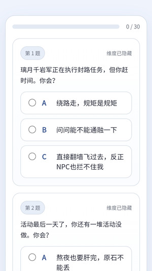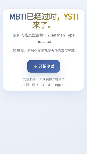 2、sbti原神人格测试免费版在熟悉的原神世界观中测试,用角色和剧情增强代入感。