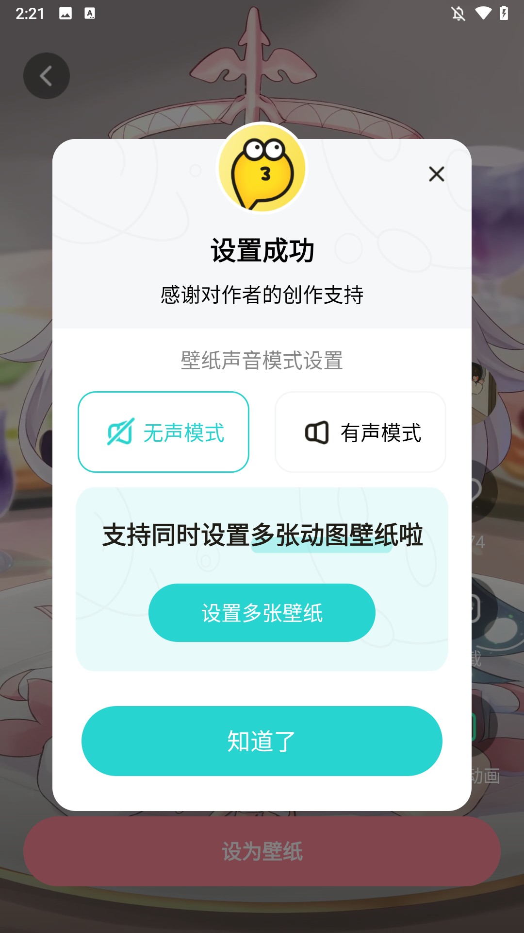4、稍等片刻,壁纸就会成功设置完成。