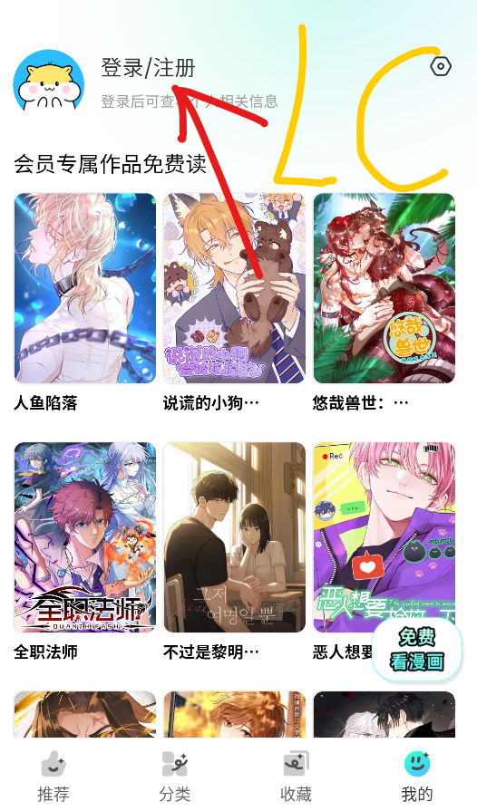 4、在任意页面中点击右下角的“免费看漫画”入口。