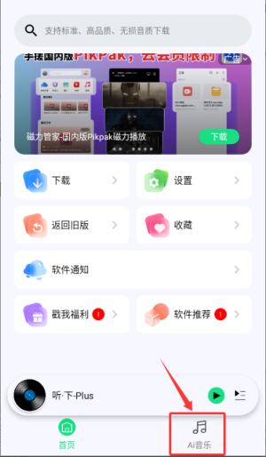 1、在听下音乐首页点击底部的AI音乐入口,进入音乐制作页面。