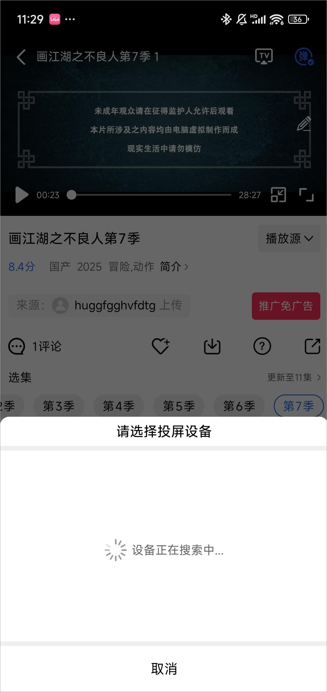 4、将搜索附近可用于屏幕投影的设备,最后,点击你想要投射到的设备。