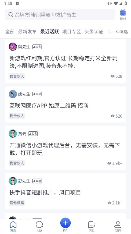 2、支持免费发布地面推广、品牌、租赁、兼职等各类合作需求,构建多维度商务对接渠道。