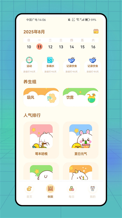 4、内置的虚拟教练角色通过温和的提醒来保持用户的动力和陪伴感。
