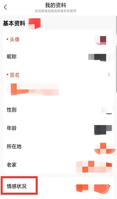 3、最后,找到并点击【情感状况】这个选项,就可以进入设置并进行相关修改了。