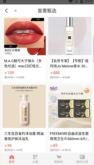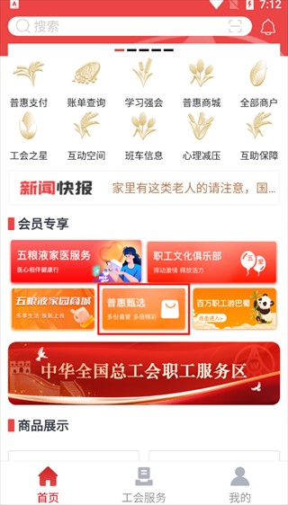 1、打开五粮液家园App,找到并点击【普惠甄选】入口。