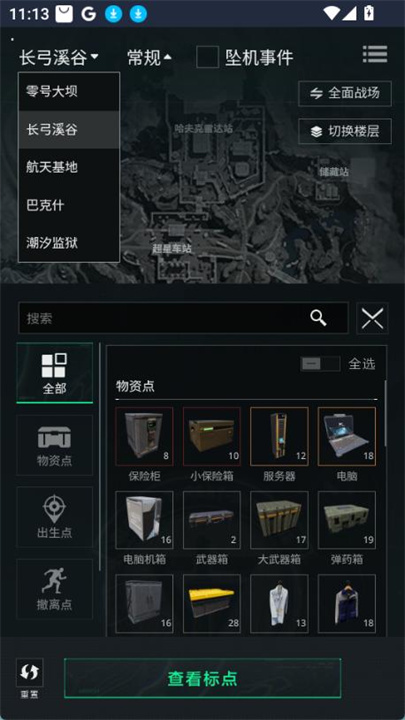 1、打开三角洲助手后,点击顶部的“地图选择”标签,然后从“零号大坝”、“长弓溪谷”、“航天基地”、“巴克什”和“潮汐监狱”这五个地图选项中进行选择。