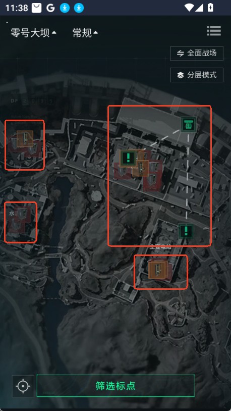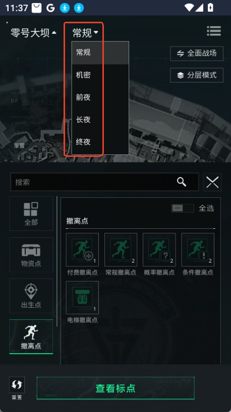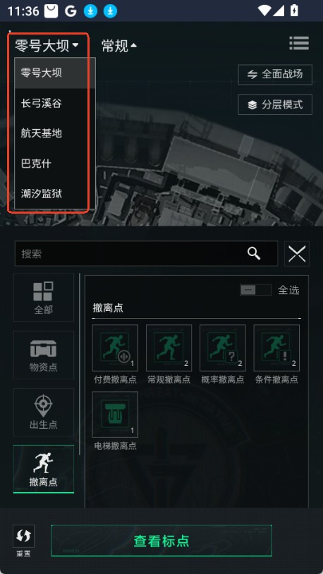 7、打开“筛选标点”选项,关闭“概率撤离点”,仅保留100%撤离点和电梯撤离点,以避免临场操作时出现误判。