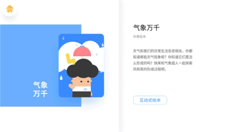 2、在首页中,我们可以浏览各种情景绘本,包括天气类、节假日类、小故事类等丰富内容。这里小编以“气象万千”绘本为例,可以看到详细的介绍信息;